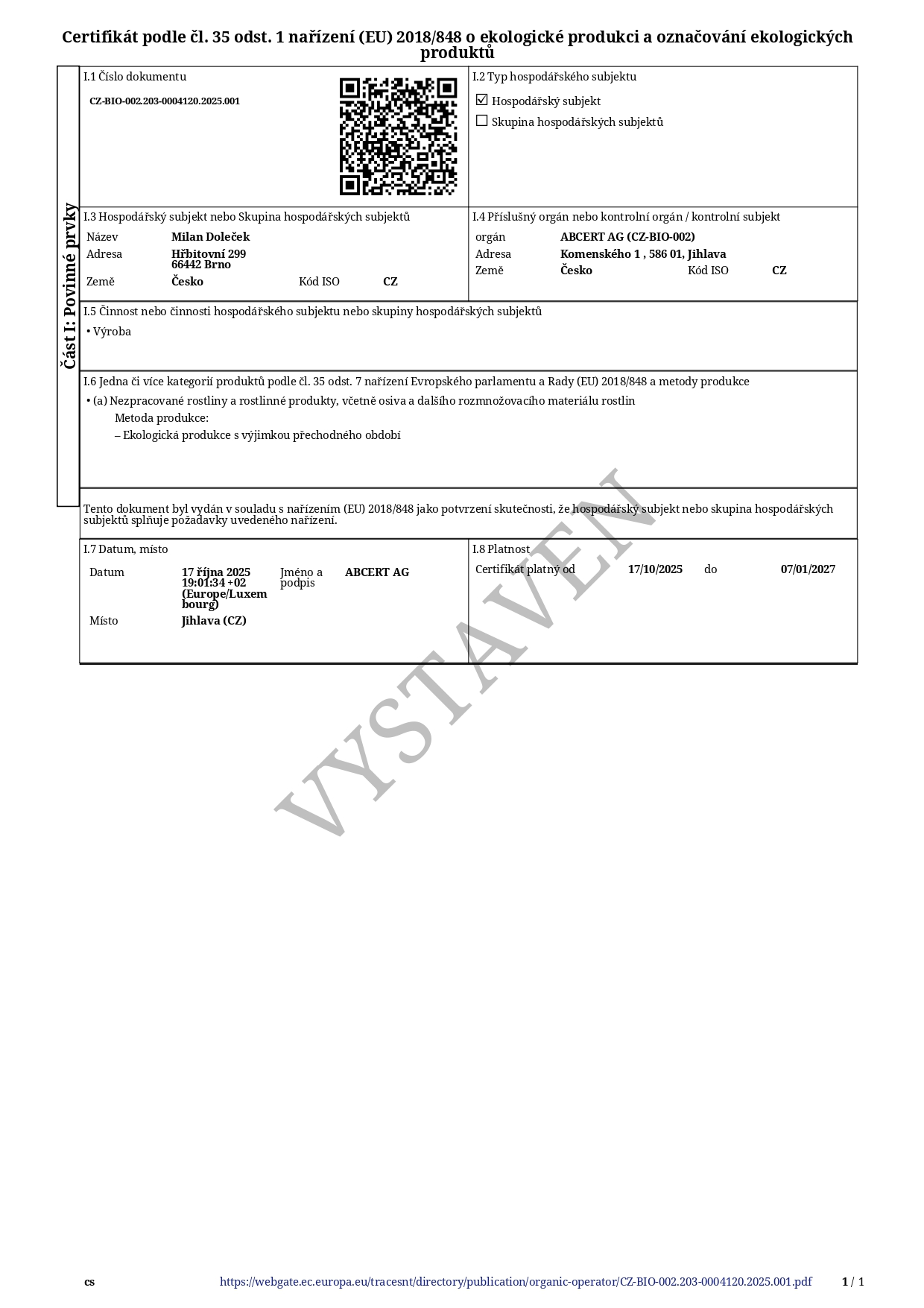 Rodinná EKO farma zabývající se rostlinnou výrobou